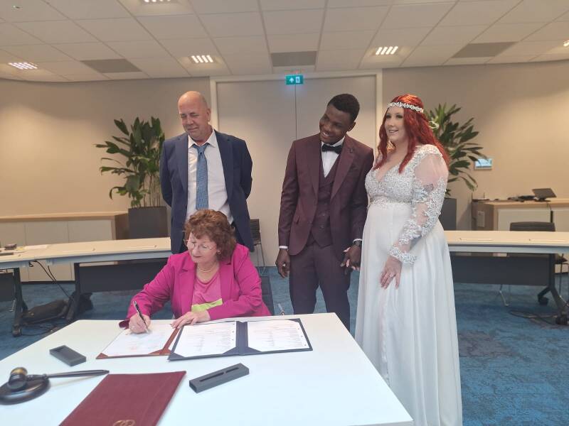 Een deel van de gasten was vanwege de grote afstand niet in de gelegenheid om deze huwelijksvoltrekking live bij te wonen, maar voor hen was er gelukkig een live-stream-verbinding met Nigeria waar zij toch konden mee genieten van de ceremonie waarin Ojo en Kim elkaar het JA-woord gaven.