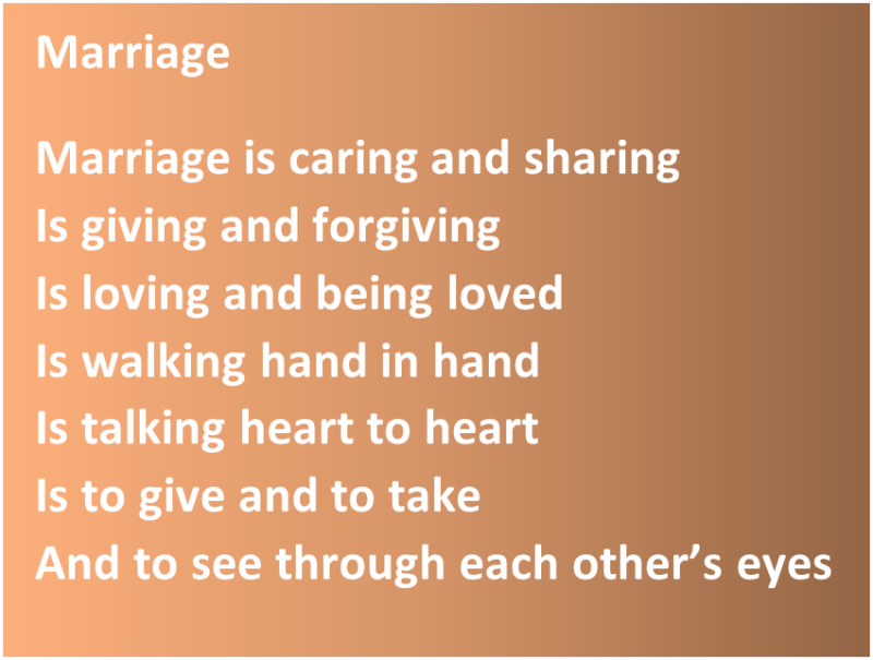 Bruden og brudgommen selv lyttet med begeistring over historiene som både deres brødre og deres foreldre hadde sendt meg som minner om ungdommen. Men også historien om bekjentskapet med sine nærmeste norske venner og de felles opplevelsene i tiden for deres tidlige foreldreskap, så vel som om deres tur til Gibraltar, brakte mye hilarity til seremonien og forsterket sin spesielle personlige karakter.
