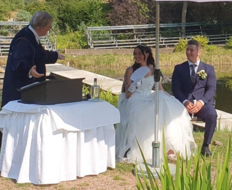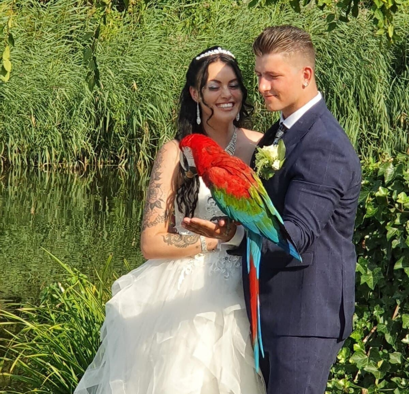 Het vogelshowtheater van Avifauna in Alphen aan den Rijn was "The Place to Be" op donderdag 25 augustus 2022. Op deze mooie plek trouwden Pascalle en Mathew onder een brandende zon.